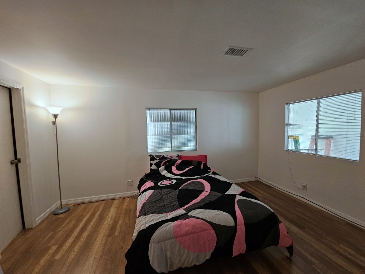 Large master bedroom with walk in closet and additional built in closet.