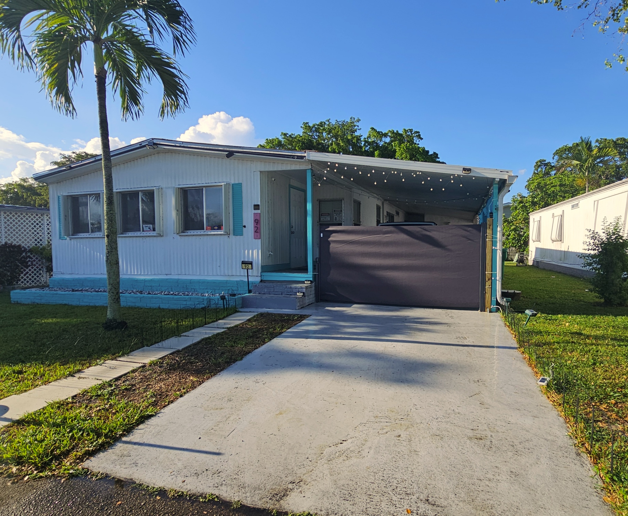 Parking for 4+ cars, covered carport with new (8/25) sunshade along one side and retractable divider (new 8/25).